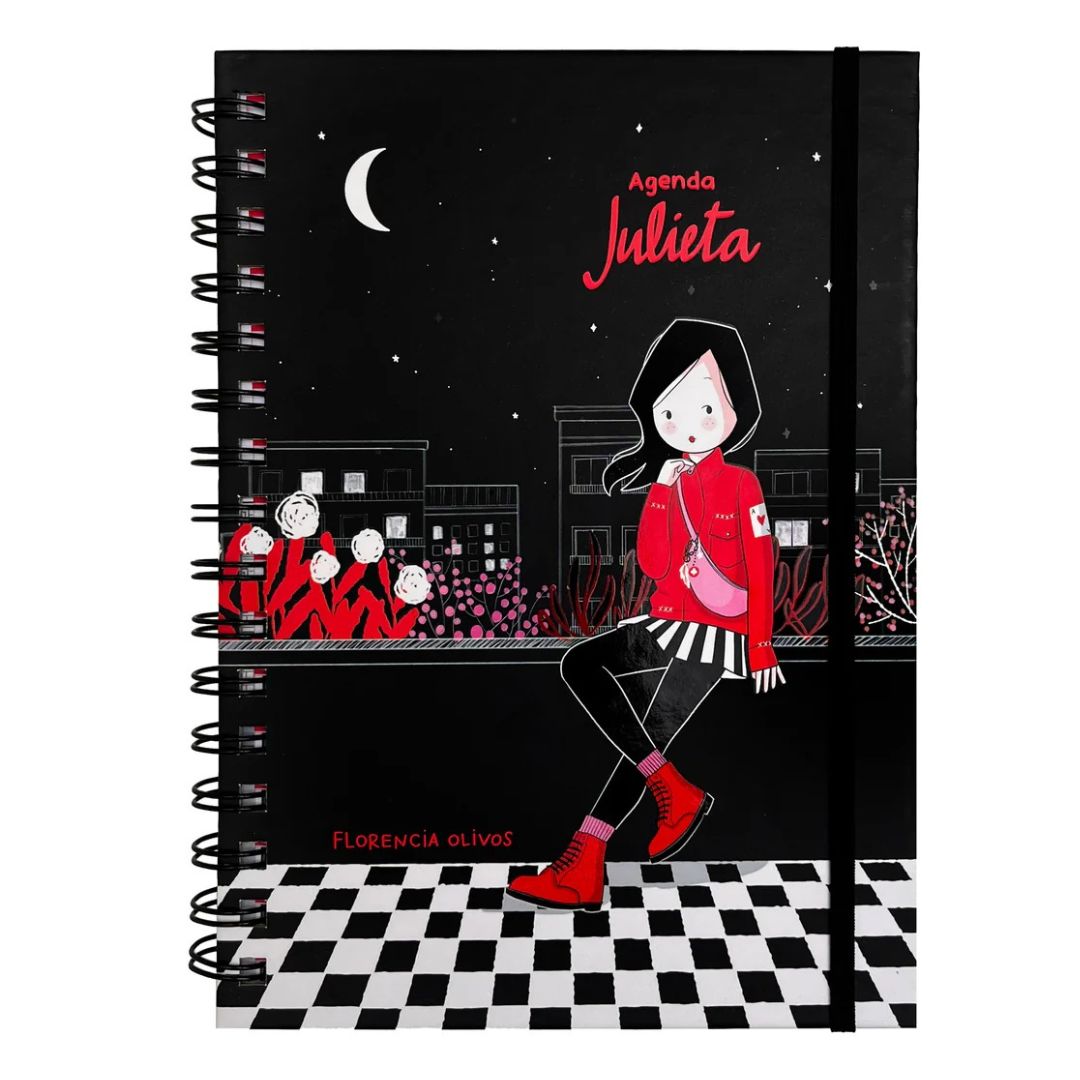 Una nueva agenda Julieta (negra), esta vez con nuevas historietas, stickers y muchas páginas para organizar tus proyectos, tus hábitos y tus gastos, llevar un registro de tus emociones y con mucho espacio para anotar tus actividades diarias.